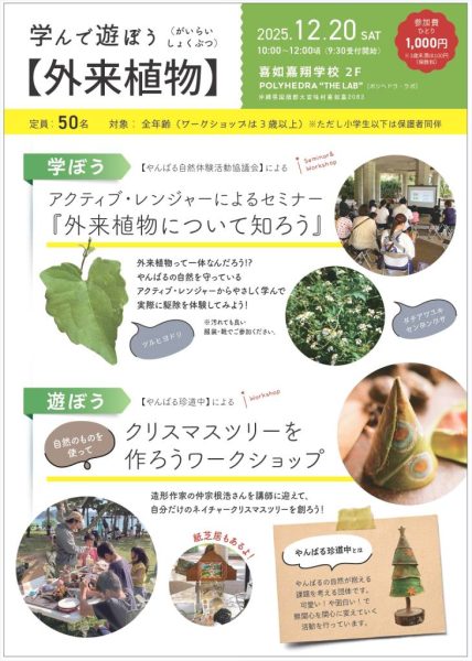 造形作家の仲宗根浩さんを講師に迎えたワークショップでは、ネイチャークリスマスツリーを作ることができます。