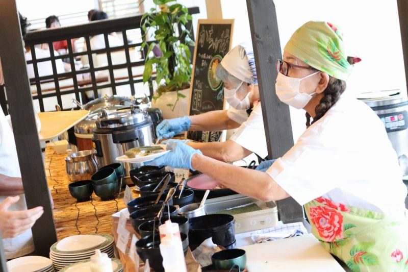 オクマの朝食ビュッフェでは、地元国頭村出身のおばぁがお客様の目の前で郷土料理を作りご提供しています👵💕