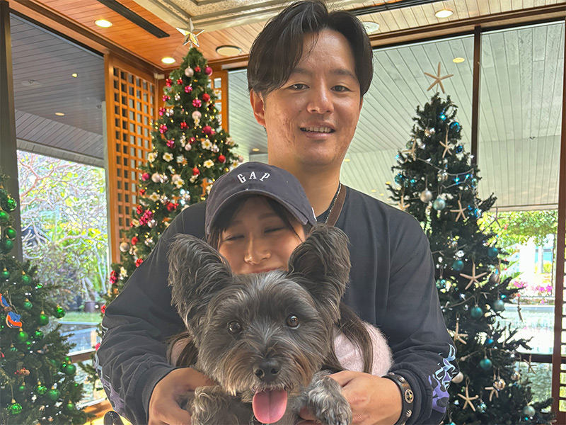 明るく人懐っこいチャンプくん。今回で20回目のオクマです。ガーデン内やビーチを自分の庭の様に楽しんで散歩していました。また色んな方に可愛がっていただき嬉しそうでした。