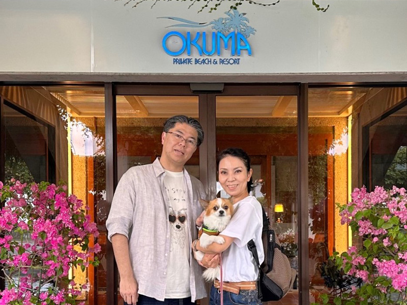 明るく人懐っこいチャンプくん。今回で20回目のオクマです。ガーデン内やビーチを自分の庭の様に楽しんで散歩していました。また色んな方に可愛がっていただき嬉しそうでした。