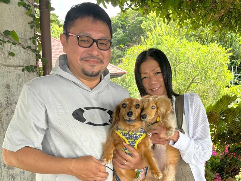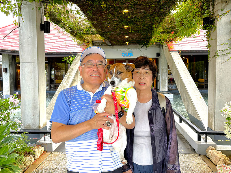 シニアとは思えない元気なちゅらちゃんと、女子力全開のまろちゃん。先代の子の供養の兼ね8年ぶりにオクマに来ました。愛犬たちも元気一杯にはしゃいで、遊んで、オクマを満喫していました。
